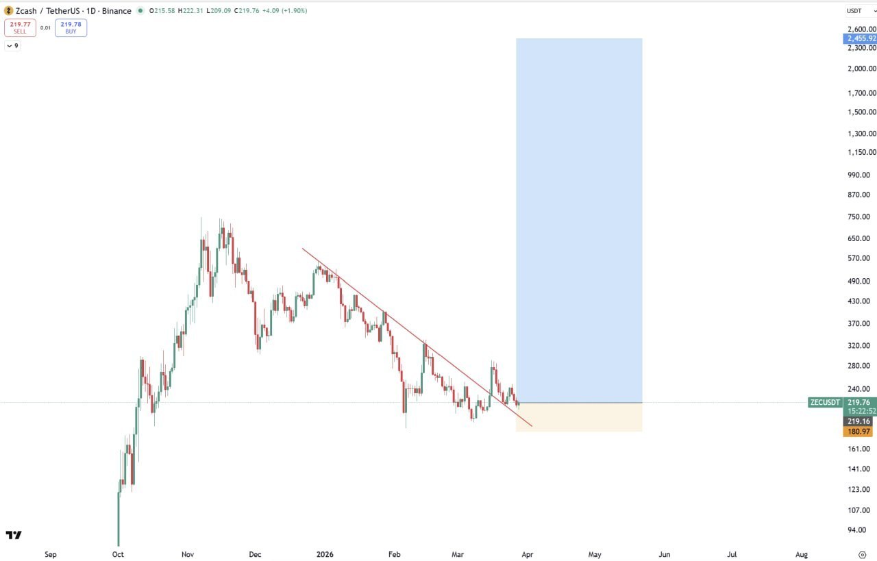 Начинайте добавлять #ZEC отсюда до уровня 280.